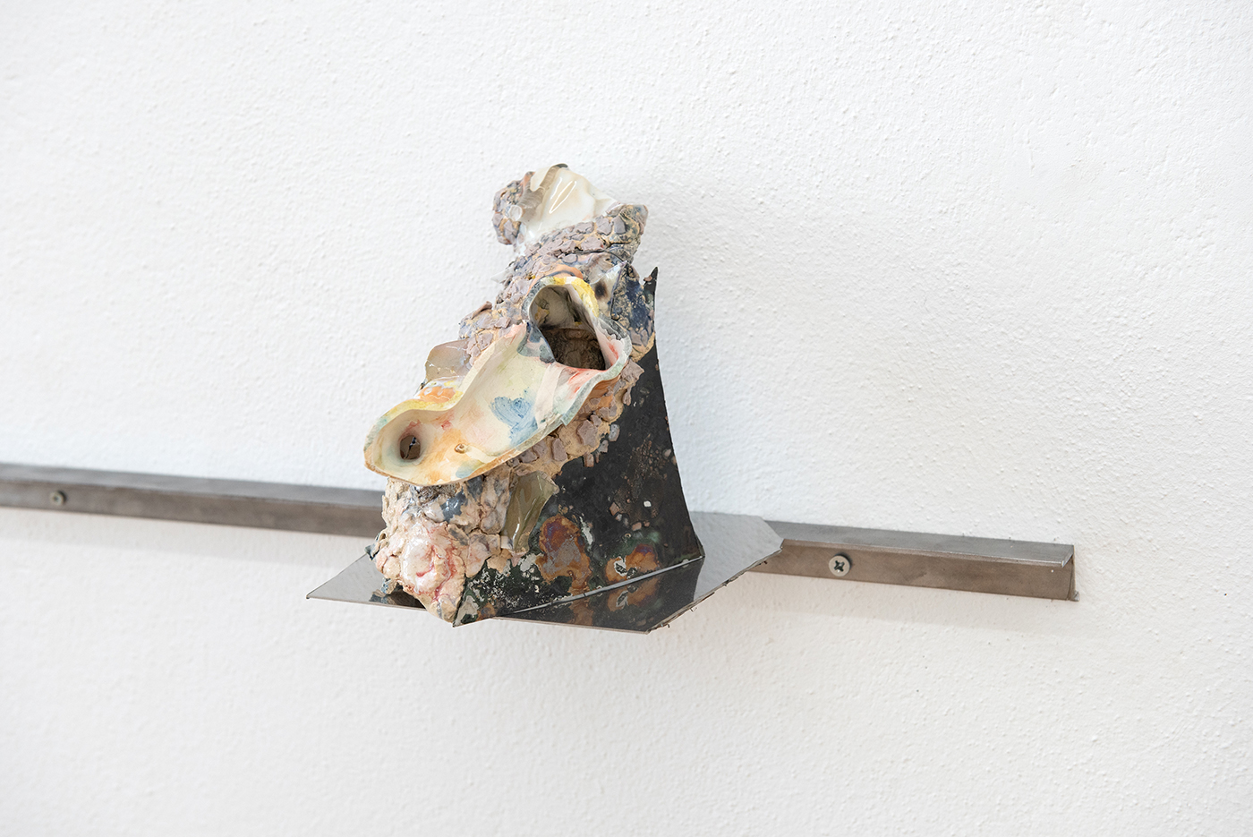 A chimera is not a pet 3; steel, glaze, ceramic, pigment; 46 × 34 × 42 cm